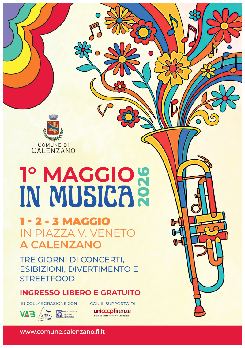 CALENZANO – Tre giorni di musica, ballo e divertimento in piazza. Dal 1° al 3 maggio piazza Vittorio Veneto ospiterà concerti, una rassegna di band giovanili, esibizioni di danza e streetfood. La manifestazione è promossa dal Comune di Calenzano, con la collaborazione di Vab, Scuola di musica di Calenzano, Associazione turistica Calenzano e con il supporto di Unicoop Firenze – sezione soci Sesto Fiorentino Calenzano. L’ingresso è libero e gratuito.