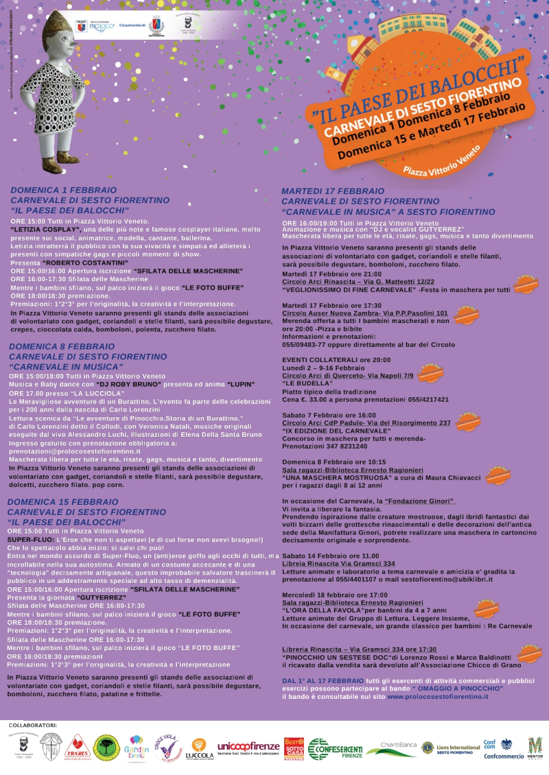 Anche quest’anno un programma divertente e con tante novità per la felicità di bambini e famiglie a Sesto Fiorentino in occasione del Carnevale con “ Il Paese dei Balocchi” .