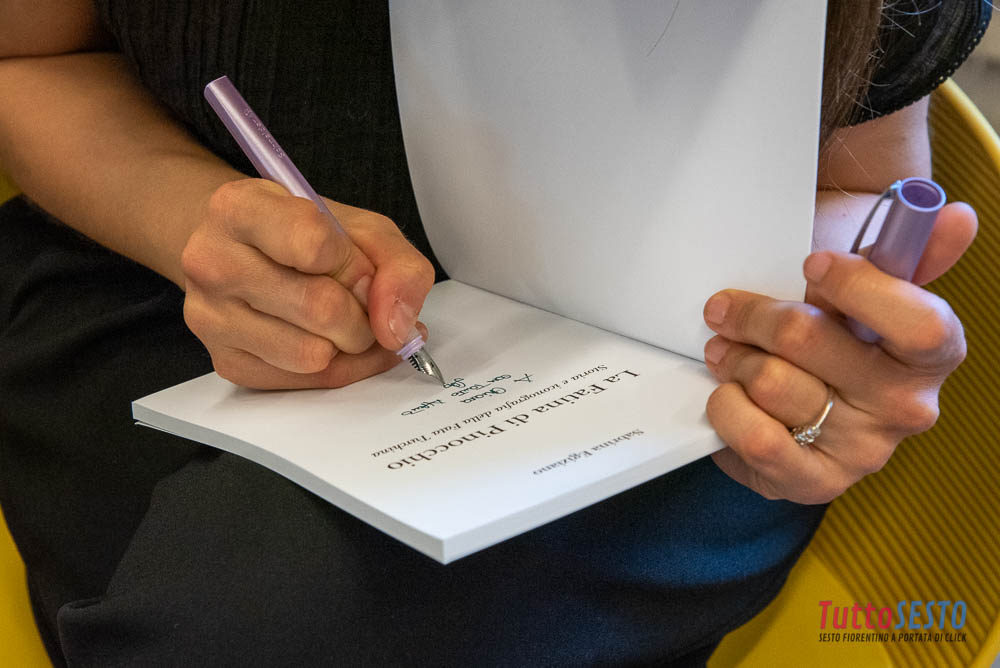 Durante l’incontro, condotto da Giuditta Tomarchio, l’autrice ha spiegato che la sua passione per Pinocchio è nata dall’incarico che le è stato assegnato dalla biblioteca Ernesto Ragionieri di Sesto Fiorentino, dove lavora. Di tutti i personaggi di Pinocchio sono stati soprattutto la Fata Turchina e la Lumaca ad attirare l’attenzione dell’autrice.