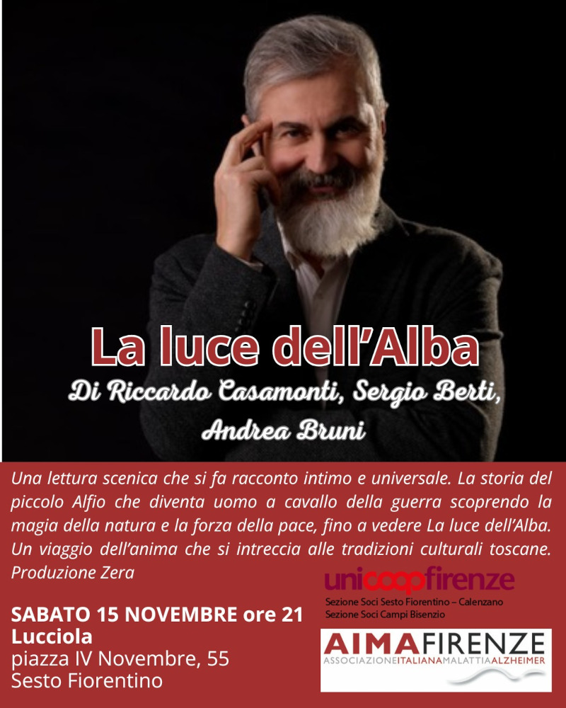 Un monologo di Andrea Bruni su testo di Riccardo Casamonti a favore dell’attività dell’Associazione Italiana Malattia Alzheimer (AiMA).
