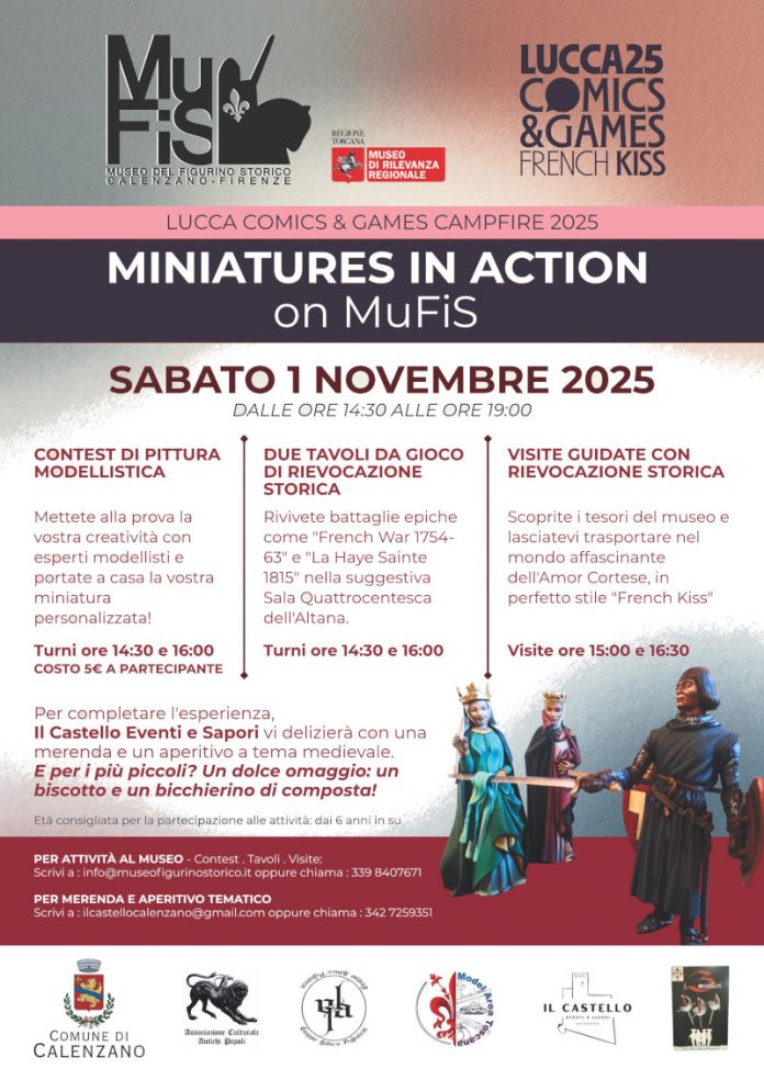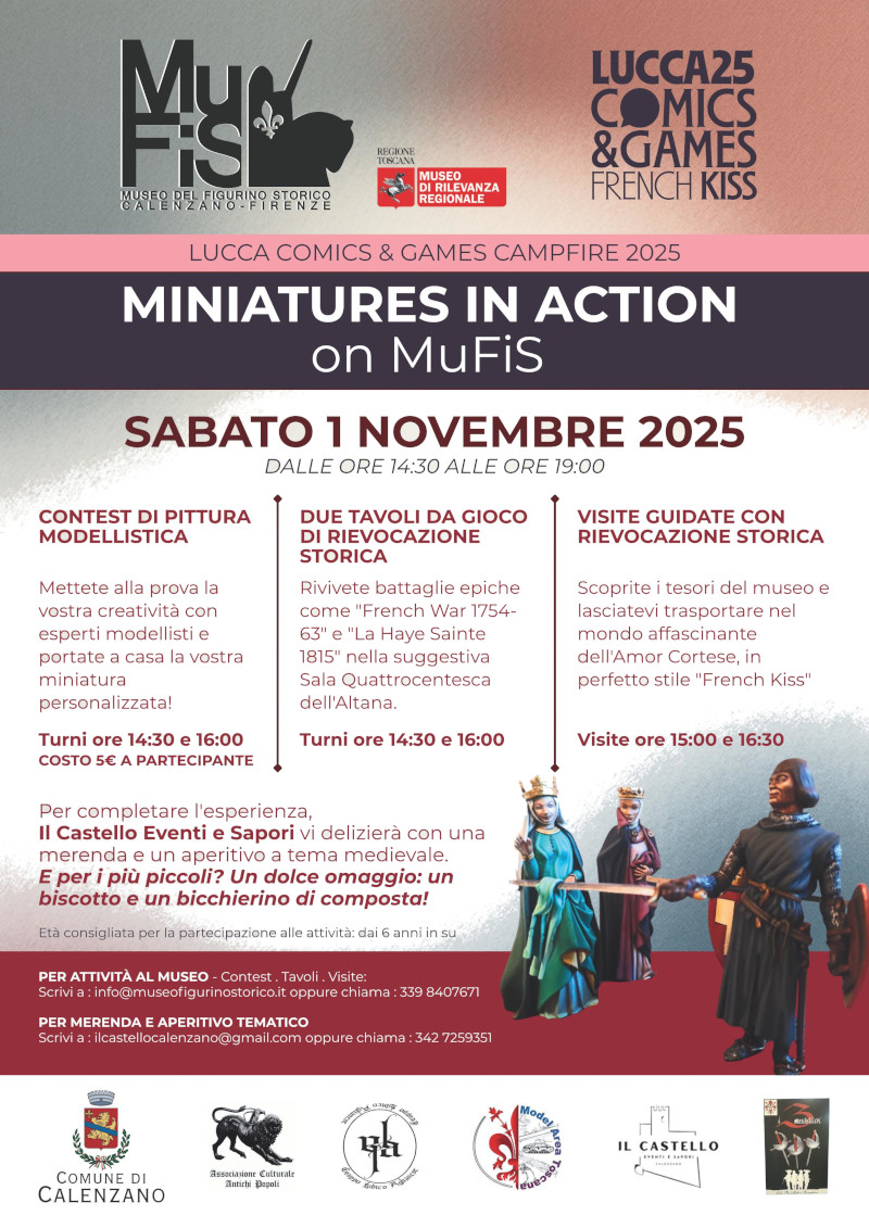 Anche per il 2025 il MuFiS si è confermato Campfire di Lucca Comics & Games pertanto una ventata lucchese di allegria e colori calerà sulle mura del castello di Calenzano sabato 1 novembre dalle ore 14:30 alle ore 19 tante attività per scoprire il tema FrenchKiss di questa edizione della kermesse lucchese in compagnia dei figurini e non solo.