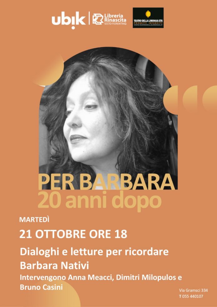 Con il Teatro della Limonaia, Barbara, ha portato la nostra città ben oltre i suoi confini fisici e culturali e la Libreria Rinascita, è lieta di ospitare un evento che, attraverso le tante figure che l’hanno conosciuta e amata, ne ricordi il ruolo e l’importanza.