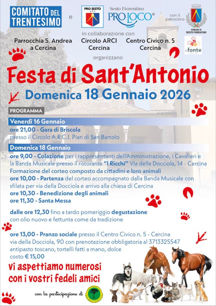 Il Comitato del Trentesimo fa parte oggi della Pro Sesto A.P.S -Pro Loco di Sesto Fiorentino, che gli ha fornito la struttura necessaria per proseguire l’organizzazione della Festa di Sant’Antonio. Quest’anno la Festa si sviluppa in due giornate: dal venerdì alla domenica 18 gennaio, quando viene celebrato il santo, considerato il patrono degli animali.