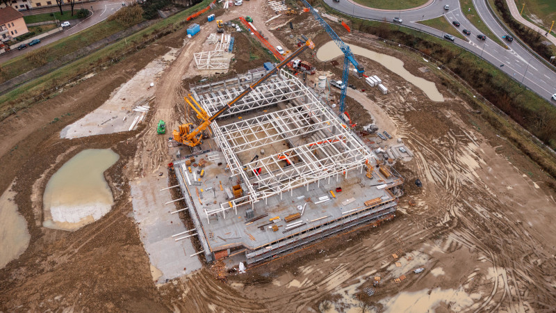 “La nuova piscina comunale comincia a prendere forma: è stata appena completata una fase particolarmente delicata dal punto di vista tecnico, ovvero il varo delle strutture di copertura reticolari in acciaio – commenta la f.f. sindaca Claudia Pecchioli al termine del sopralluogo svolto al termine dell’intervento – Si è trattato di un’operazione complessa che le squadre al lavoro hanno ultimato nonostante le condizioni meteo non ottimali di questi giorni. La realizzazione della copertura non costituirà solo un avanzamento visibile del progetto, ma permetterà anche di lavorare nelle prossime fasi con maggiore continuità negli spazi interni, essendo meno condizionati dal meteo”.
