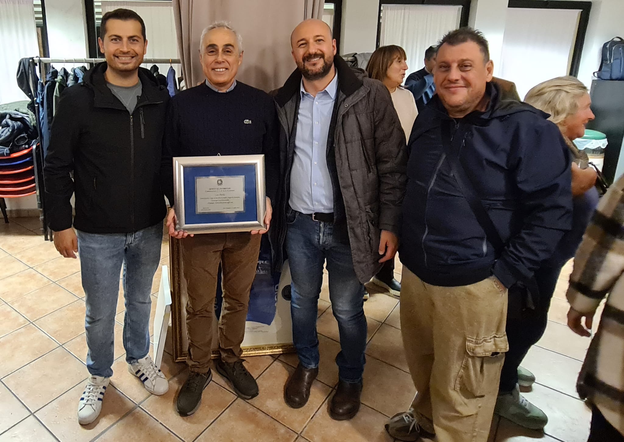 Nel corso della serata il quasi ex Comandante della Polizia Locale di Sesto Fiorentino ha ricevuto anche un paio di regali: una maglia blu da ciclista donatagli da Dimitri Bessi dell’associazione “Per sempre Alfredo” e una targa commemorativa realizzata dalla Questura di Firenze (foto in alto).