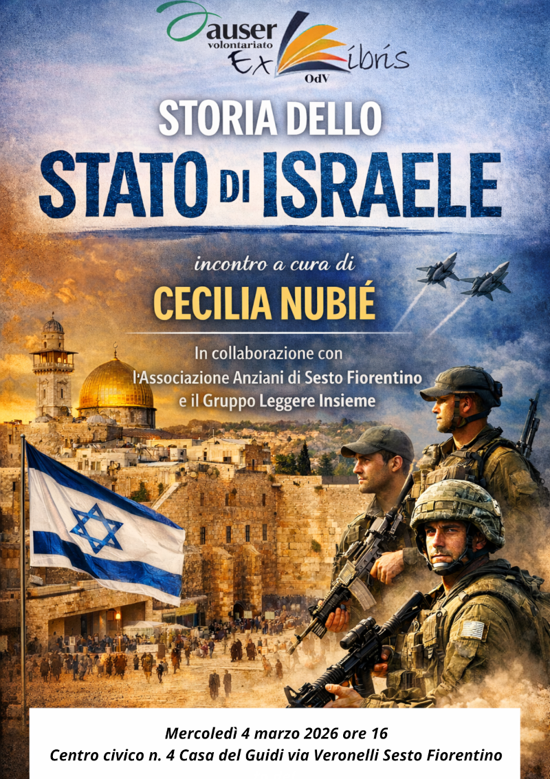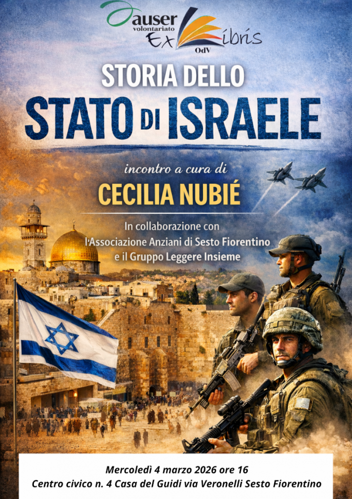 Mercoledì 4 marzo alle ore 16 presso il centro civico n.4 Casa del Guidi in via Veronelli 4, Cecilia Nubié condurrà l’incontro “Storia dello Stato di Israele”.